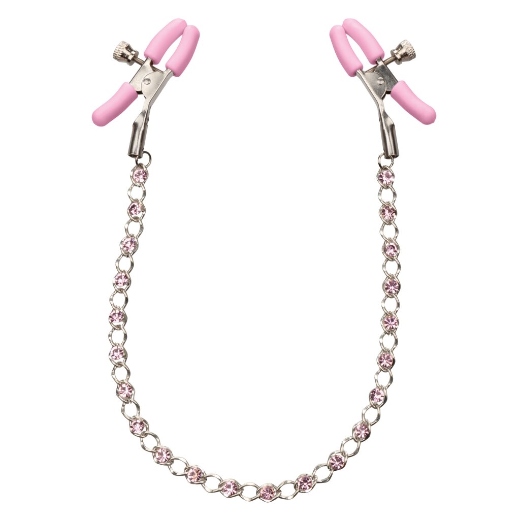 Faites passer les sensations au niveau supérieur et profitez de jeux de mamelons excitants avec les First Time Crystal Nipple Teasers. Découvrez des sensations inédites grâce aux 2 pinces à tétons entièrement réglables, à la chaîne stimulante et aux cristaux scintillants. Atteignez de nouveaux niveaux de plaisir ludique avec les pinces réglables. Pincez les pinces coquines sur votre corps et profitez de chaque assaut de douleur et de plaisir. Les pinces réglables stimulent chaque partie de votre corps pour un plaisir ludique. Plus la tension est ferme, plus les picotements sont intenses à chaque rotation du bouton de réglage pour une stimulation ultime des mamelons. La stimulation de la pince à mamelon et l'augmentation de la circulation sanguine augmentent la sensibilité des mamelons et l'excitation globale. Ces appareils de stimulation des tétons faciles à utiliser conviennent pour elle ou pour lui. Les deux pinces réglables sont en fer sans nickel avec une gaine en silicone, une chaîne en fer sans nickel et des cristaux de silice. Dimensions du produit : 5,75 cm (chaque pince) | 30,5 cm (chaîne) / Matériaux : fer sans nickel (chaîne, pinces), silicone (pastilles), silice (cristaux)