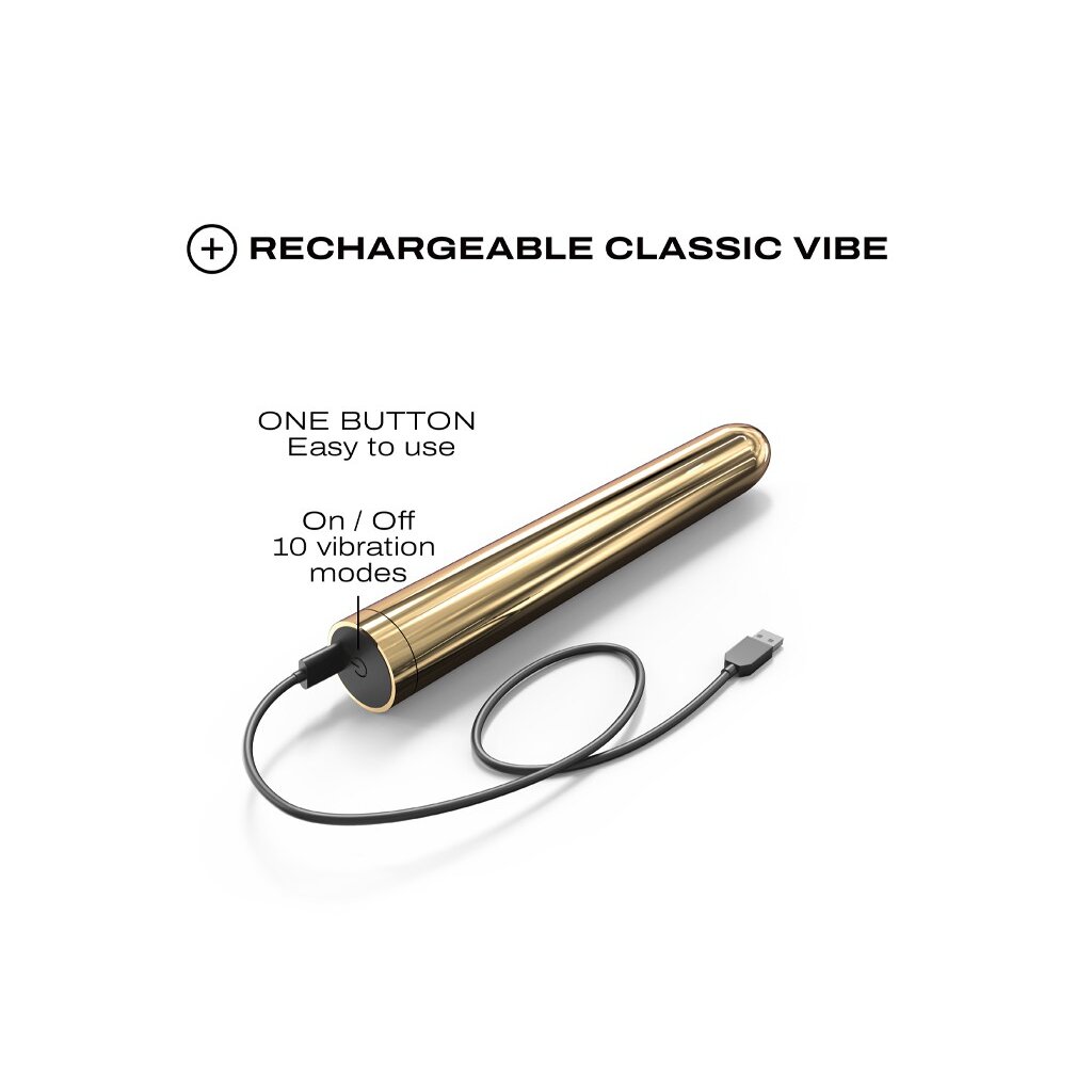 Experience unforgettable moments of pleasure with the Golden Boy 2.0 bullet vibrator in shiny gold! The powerful motor offers you 10 different vibration modes to pamper you individually. Thanks to the rechargeable battery, you can enjoy your pleasure and protect the environment at the same time. The ultra-strong conical tip and super-smooth shaft provide intense stimulation that will send you into ecstasy. With an insertable length of 15 cm, you have a wide range of applications to live out your fantasies. The short charging time of just 150 minutes gives you a long runtime of 120 minutes of uninterrupted pleasure. Treat yourself to this high-quality product and discover new highlights of your pleasure!