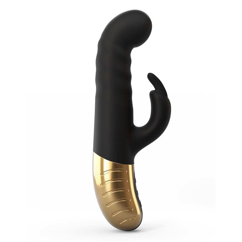 Vivez une expérience incroyable avec le vibromasseur G-STORMER® Thrusting Rabbit de DORCEL grâce à sa conception spéciale de moteur linéaire avec 7 mouvements de haut en bas. La forme incurvée du vibromasseur offre une stimulation ultime du point G, tandis que le stimulateur clitoridien avec 10 vibrations procure un plaisir supplémentaire. La poignée ergonomique incurvée assure une prise en main confortable, tandis que le matériau en silicone souple est exempt de phtalates. Il suffit de charger le vibromasseur via USB pour profiter de plaisirs sensuels pendant jusqu'à une heure. Grâce à son étanchéité et à sa protection contre les éclaboussures, tu peux également utiliser le G-STORMER® dans l'eau. En or et noir élégant, ce vibromasseur n'est pas seulement fonctionnel, il a aussi du style. Procure-toi dès maintenant le vibromasseur G-STORMER® Thrusting Rabbit et vis des moments de plaisir inoubliables !