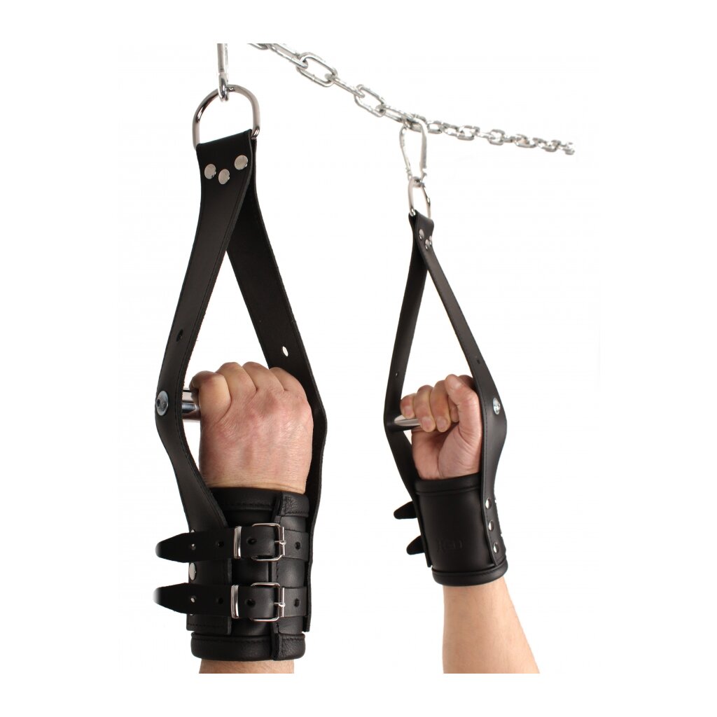 Avec les menottes de luxe à suspendre en cuir + 2 mousquetons pour les mains, rendez vos moments à deux encore plus excitants ! Fabriquées en cuir de haute qualité - tannage végétal. Poids: 1105 gr / Largeur: 30.0 cm / Profondeur: 10.0 cm / Hauteur: 40.0 cm