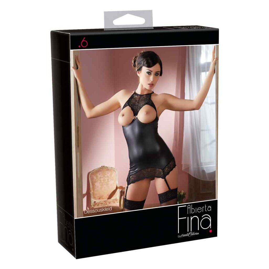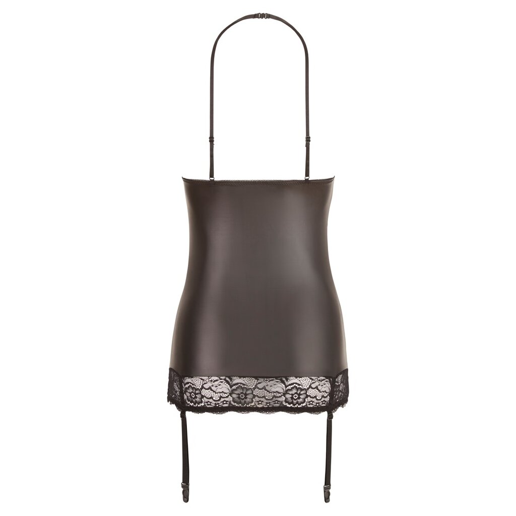 Sensualité, style, sophistication ! Robe de lingerie à bonnets ouverts avec de magnifiques inserts en dentelle et un anneau décoratif en strass dans la zone du décolleté. Étonnamment chatoyant, merveilleusement extensible et un ajustement parfait. Les bretelles de soutien-gorge et de jarretelles sont réglables.
