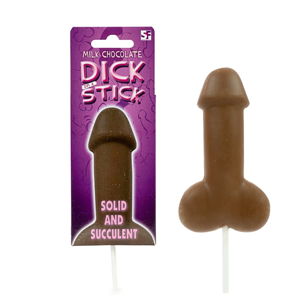 Willie aus Vollmilchschokolade am Stiel. 30 Gramm / Inhaltsstoffe: Zucker, Vollrahmpulver, Kakaobutter, Kakaomasse, Lecithin E322, Vanillin. Mindestens 25% Kakaotrockenmasse, mindestens 14% Milchtrockenmasse