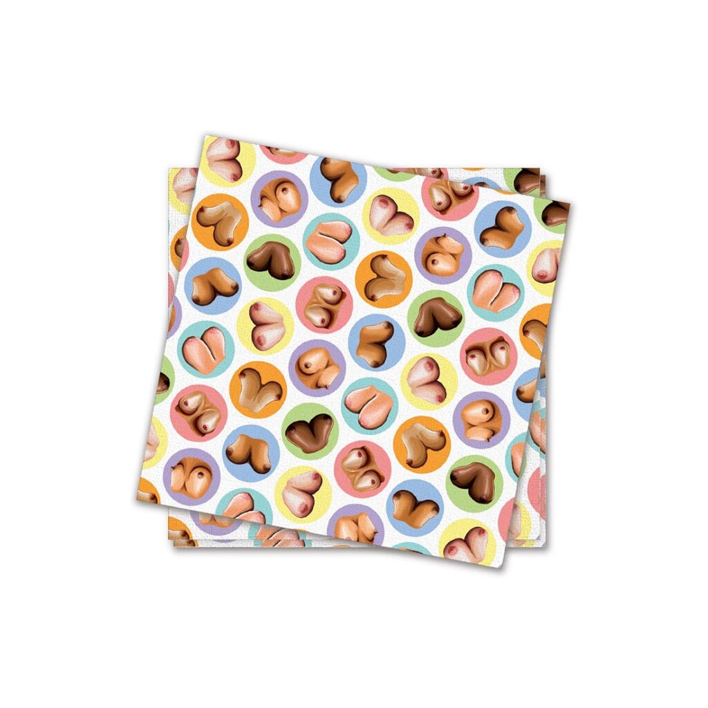 Idéal pour les enterrements de vie de garçon et les fêtes d'anniversaire ! Huit serviettes à cocktail 2 plis, avec impression complète, par sac en polyéthylène avec carte d'en-tête.