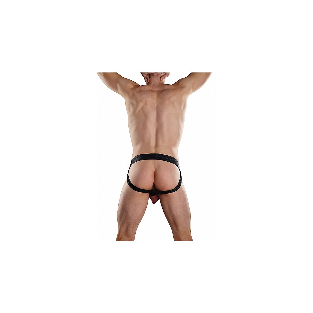 Double Ring Jock en aspect cuir dans un mélange de poly-spandex. Taille S / Composition du matériau : 85% polyester 15% élasthanne