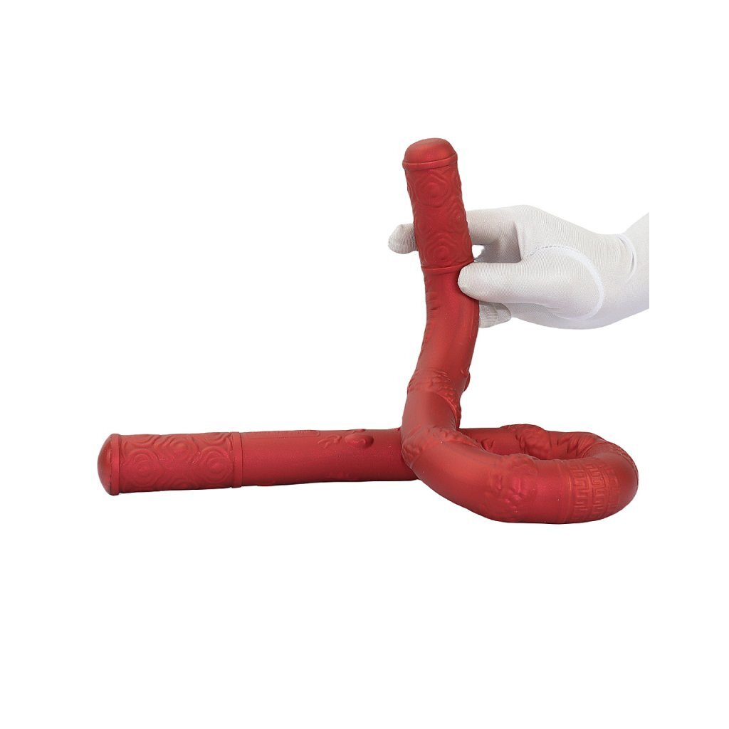 Avec une longueur totale de 64 cm et une largeur comprise entre 3 et 3,2 cm, ce double gode offre une stimulation régulière sur toute sa longueur. Les différents reliefs apportent un jeu subtil de textures qui enrichit chaque mouvement.
