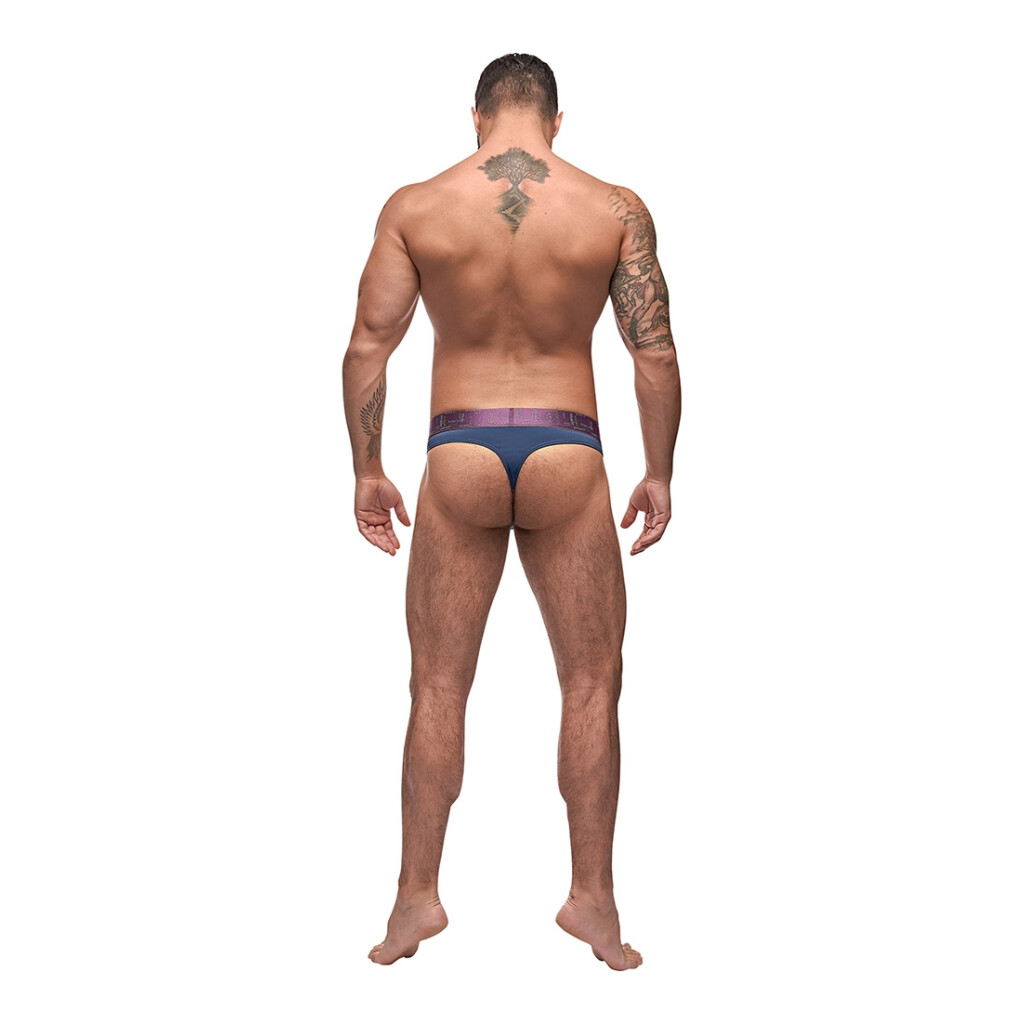 Dieses Modell aus der Avant-Garde-Kollektion von Male Power beinhaltet: Ein Enhancer-Tanga mit einem stützenden, verstärkenden Beutel, einer seidig glatten, luxuriösen Oberfläche und einem innovativen, mit Collage-Text versehenen Bund. Größe S/M / Materialzusammensetzung: 87% Nylon 13% Elasthan