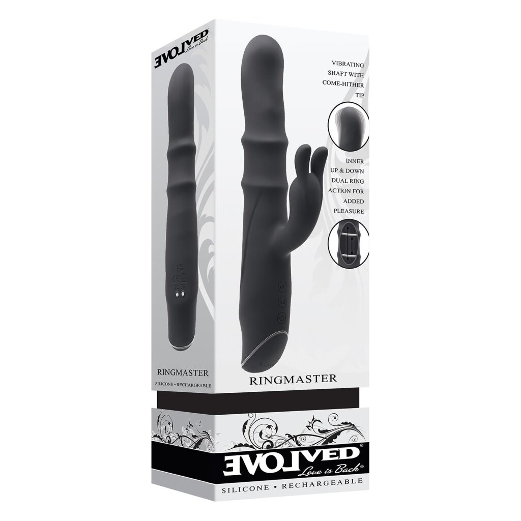 This Ringed Rabbit Vibe features 2 powerful motors that power 4 pleasurable functions! The main shaft and rabbit ear stimulator vibrate at 10 speeds simultaneously, while the head works in tandem with the up and down motion of the central rings. Control each motor separately with the illuminated 3-button control panel and take this multi-thriller into the bath or shower as it can be fully submerged! Magnetically rechargeable via USB and easy to clean. 10 vibration speeds and patterns in rabbit and shaft / Made of silicone and ABS plastic / Length: 23.1 cm / Width: 3.9 cm / Insertable length: 12.7 cm / Insertable diameter: 3.6 cm / Waterproof & submersible / Phthalate and latex free / Magnetically rechargeable, USB cable included