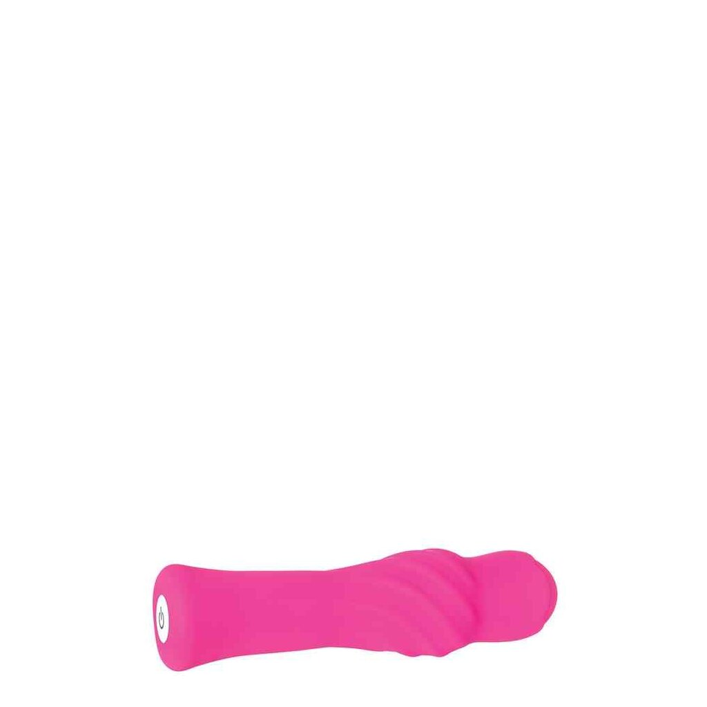 This petite vibrator packs a powerful punch with its forceful motor and bulbous shaft. A beautifully crafted tulip-shaped head gives way to a swirly-textured bulging shaft that is flexible to move with your body. Ten strong speeds and functions urge your pleasure to new heights, even underwater as this toy is completely waterproof and submersible. Clean with toy cleaner and a warm water rinse.