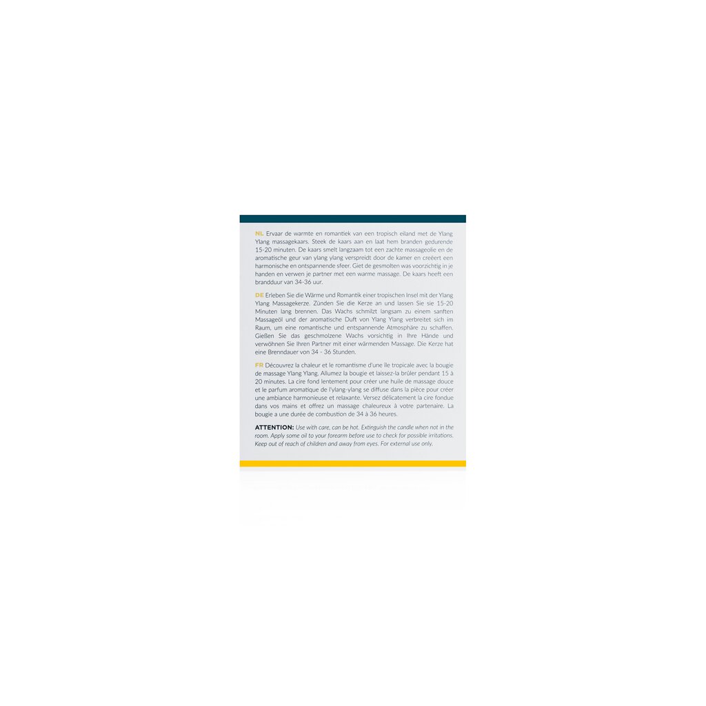 Enjoy or give a lovely massage with this Exotiq massage candle. Light the candle and enjoy the wonderful Ylang Ylang fragrance that spreads through the room.