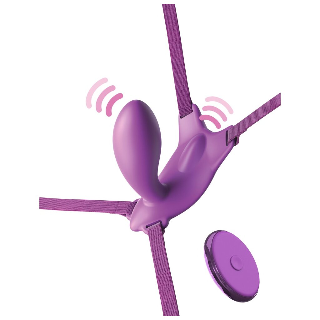 Elle porte le bracelet papillon à double moteur Ultimate G-Spot de Fantasy For Her pour être intimement choyée par de puissantes vibrations. Totalement discret, personne ne remarque le petit secret du plaisir ! Le vibrateur en silicone léger et de forme anatomique parfaite est fermement intégré dans le string extensible et stimule spécifiquement la zone G du vagin, ainsi que le clitoris et les lèvres de la vulve en même temps.