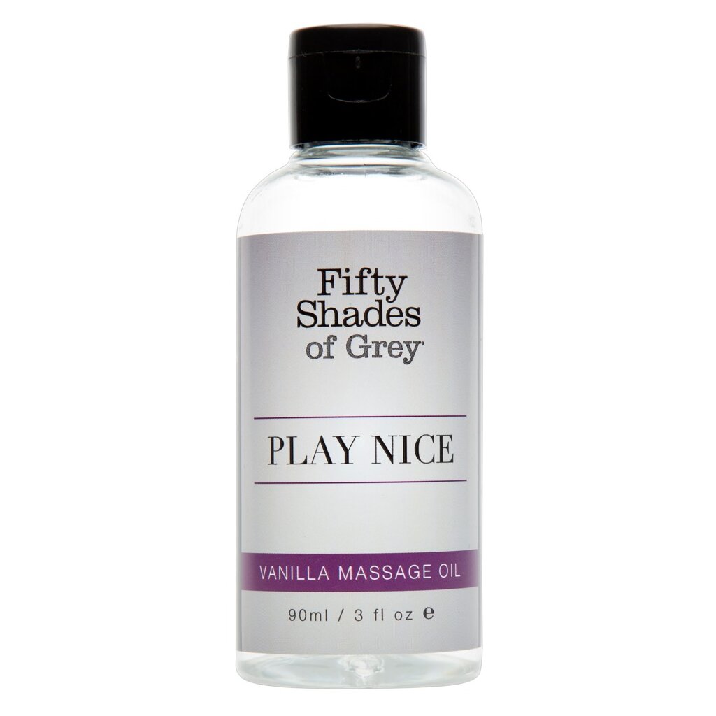 Pour des massages partenaires excitants à la Ana et Christian ! Huile de massage Play Nice Vanilla de haute qualité de Fifty Shades of Grey avec un parfum sensuel de vanille qui éveille et intensifie les sens et l'humeur ! Parfait pour un massage de partenaire explorateur et des préliminaires prolongés. 90 ml.
