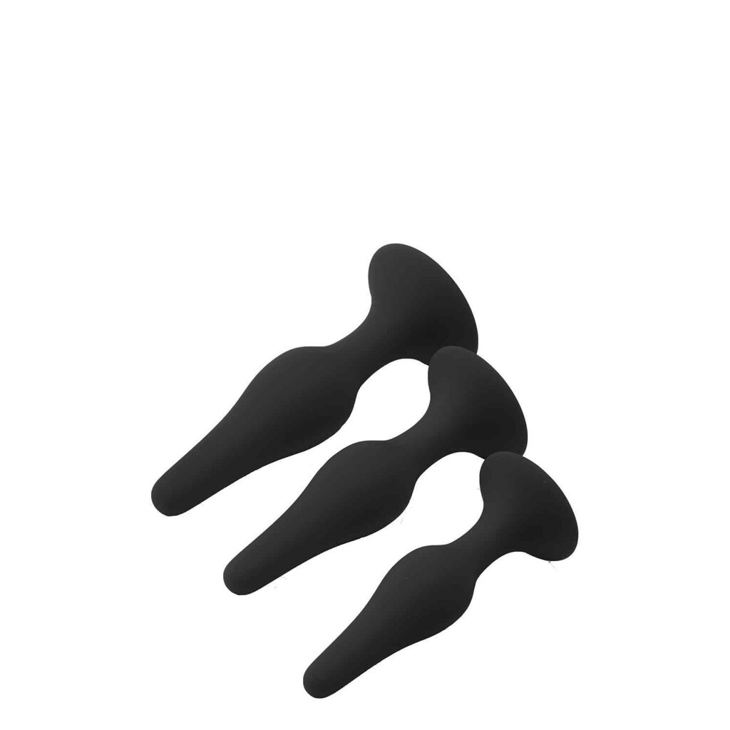 This kit features 3 anal plugs in 3 sizes. Each plug is made of silicone that is soft to the touch. A set with different sizes is perfect for users who wish to vary the sizes of the plugs and for those who want to train from small to big while enjoying anal pleasure. The plugs have a suction cup for hands free use.