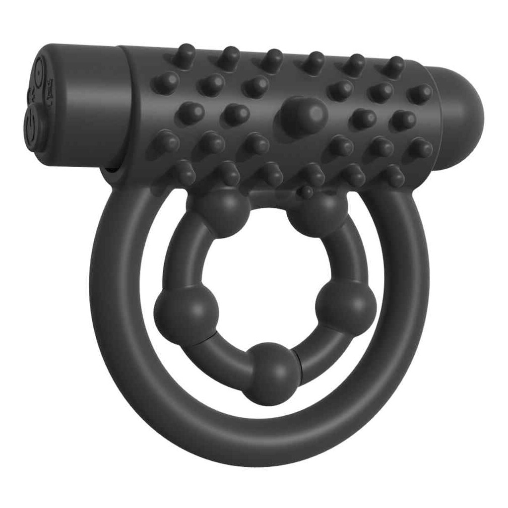 Cock and ball ring with a vibro-bullet and clitoral stimulator that helps with diverse and intense sex. The remote control makes it quick and easy to control the vibrations. The remote control has a range of up to 7.5 metres. The powerful bullet has 10 vibration modes. The bullet is removable. The practical retrieval strap means that the bullet can be inserted into the vagina or anus without worrying about it getting lost. The cock ring with dots additionally stimulates the penis. Waterproof. Includes a USB cable.