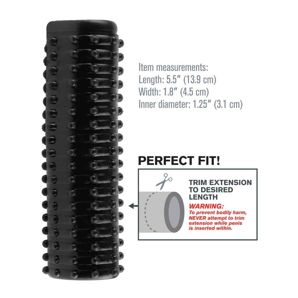 A penis sleeve with a dotted surface that thickens the penis slightly and provides additional stimulation during sex. The sleeve is open at both ends and fits nice and tightly so that it helps create hard, long-lasting erections. Furthermore, the sleeve is also very flexible and can therefore be slid over the penis easily. If it is turned inside out, it can also be used as a masturbator because of its stimulating dots. Scissors can be used to cut it down to size.