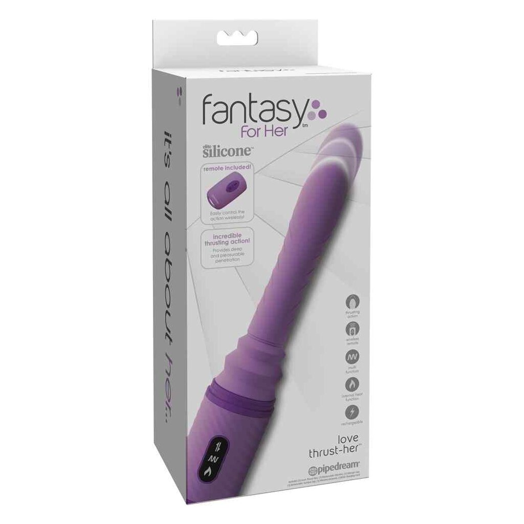 The thrust-her is an all-round climax machine! This super toy offers three spectacularly stimulating functions to choose from: a thrust function, vibration and a warming function. All three options can be controlled separately at the base of the toy or with the included remote control. Hands-free orgasms are also possible thanks to the suction cup. After use the shaft can be removed and stored securely.