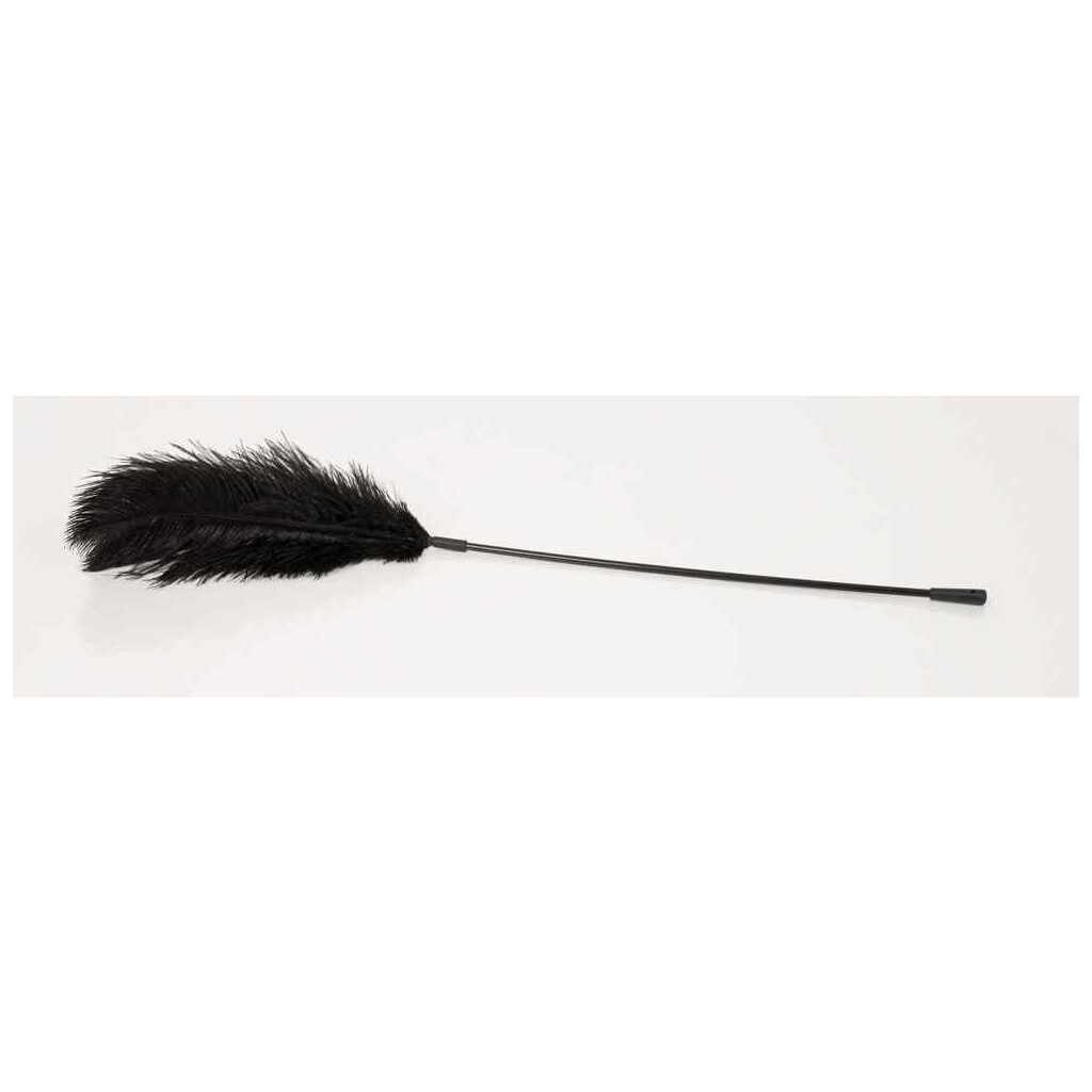 For tickling tenderness! Big black feather on a long plastic wand (length 38 cm). Size feather: approx. 27 x 13 cm. Feather, wand: polyvinyl chloride. Contains non-textile parts of animal origin.