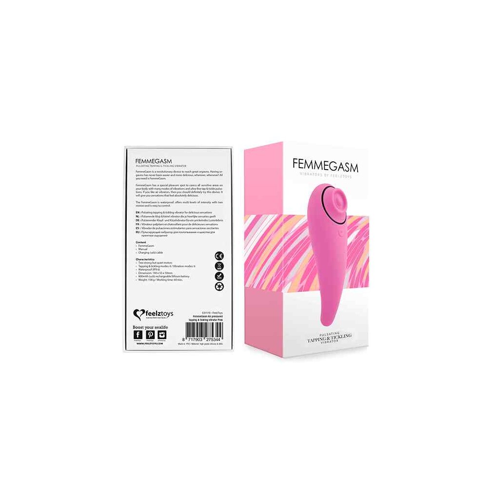FemmeGasm hat einen speziellen Lustpunkt, um alle empfindlichen Bereiche Ihres Körpers mit vielen Vibrationsmodi und ultrafeinen Tap & Tickle-Pulsationen zu streicheln. Wenn Sie Luftvibratoren mögen, dann sollten Sie dieses Gerät unbedingt ausprobieren. Es wird Ihnen Empfindungen bescheren, die sich absolut köstlich anfühlen.