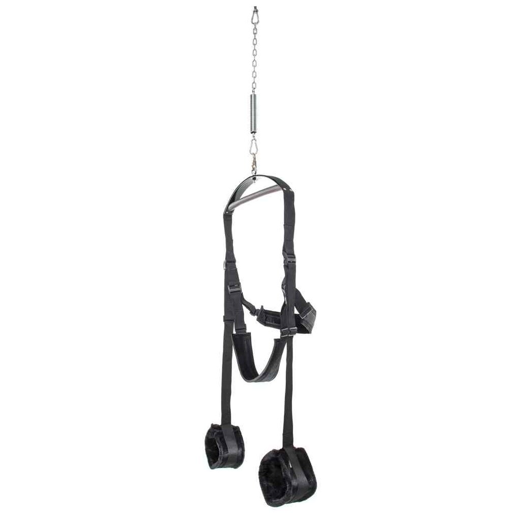Stellungen, die im Bett "technisch" unmöglich sind, werden mit dieser schwarzen Schaukel zum neuen Lust-Vergnügen. Gurte und Fußschlaufen aus reißfestem Polyamid, gepolstert und längenverstellbar. Inklusive Montagezubehör.