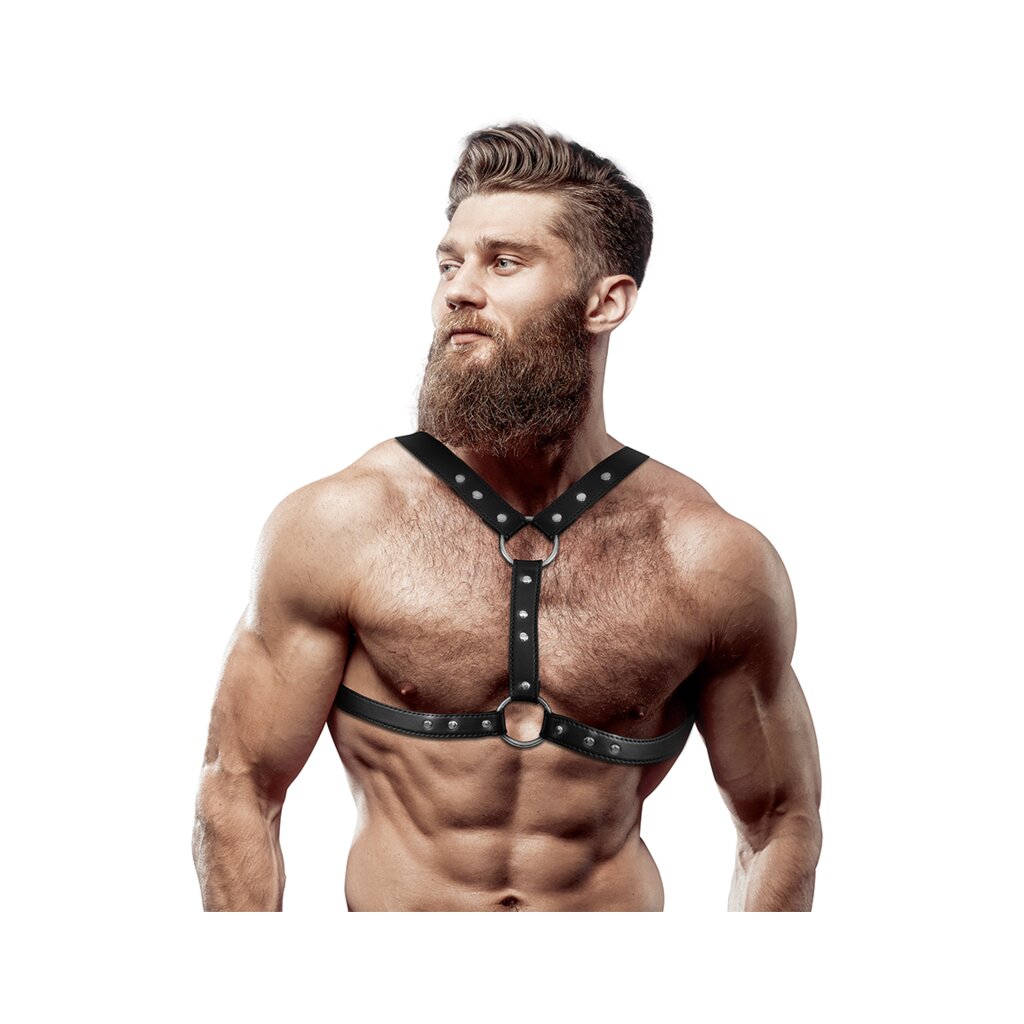 Unleash your power and dominate the dance floor with the chest harness! This front harness with sexy structure has been designed to emphasise the male figure and enhance your sexual image. Thanks to its adaptable material, it is easy to put on and has a flexible size that adapts perfectly to your body. The material ensures an excellent fit on the upper body so that you look flawless with every movement. Its numerous straps allow you to position it perfectly around your shoulders and chest and emphasise your attributes in a unique way. If you want to stand out at every event or simply add a touch of sensuality to your look, our front harness is the perfect choice. One size fits all, fully adjustable to all sizes / Made from vegan leather