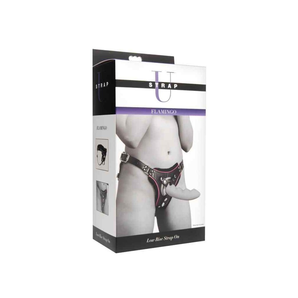This vegan-friendly strap on harness has exciting pink accents and a low-cut design to help draw their eye and keep their attention fixed on you. The belt is fully adjustable, with buckles at the hips and rear straps for a tight fit. The back is wide for more support and lined with soft fabric for comfort. The front has an easy snap-in feature. Using one of the two included steel O-rings, you can add your favorite dildo, with multiple size options. The open-back design still leaves everything open for easy access.