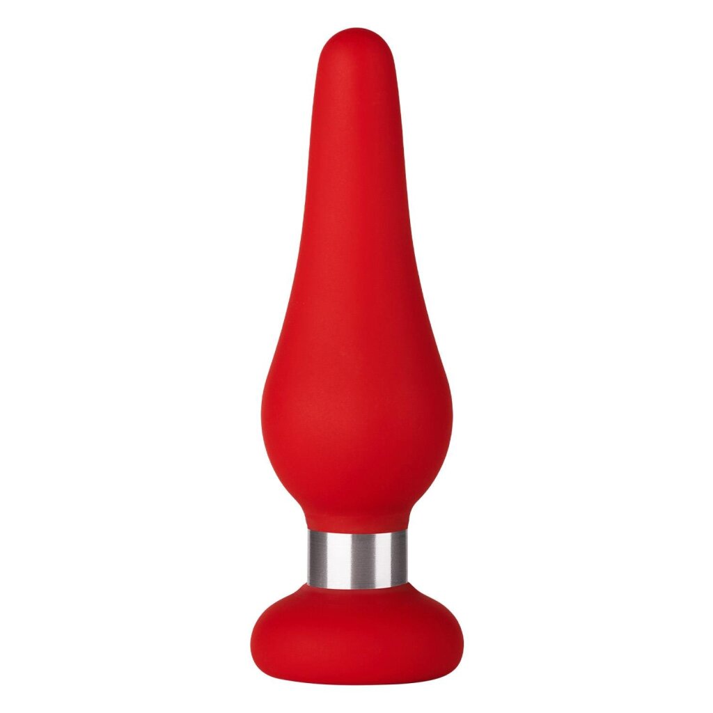 Die flexible Ausführung erleichtert das Einführen und passt sich geschmeidig an. Der flache Standfuß sorgt für sicheren Halt, während der glänzende Stahlring zwischen Basis und Plug-Körper einen edlen, stilvollen Akzent setzt. Die seidig-glatte Oberfläche aus 100% Premium-Silikon gleitet mühelos und vermittelt ein luxuriöses, warmes Hautgefühl.