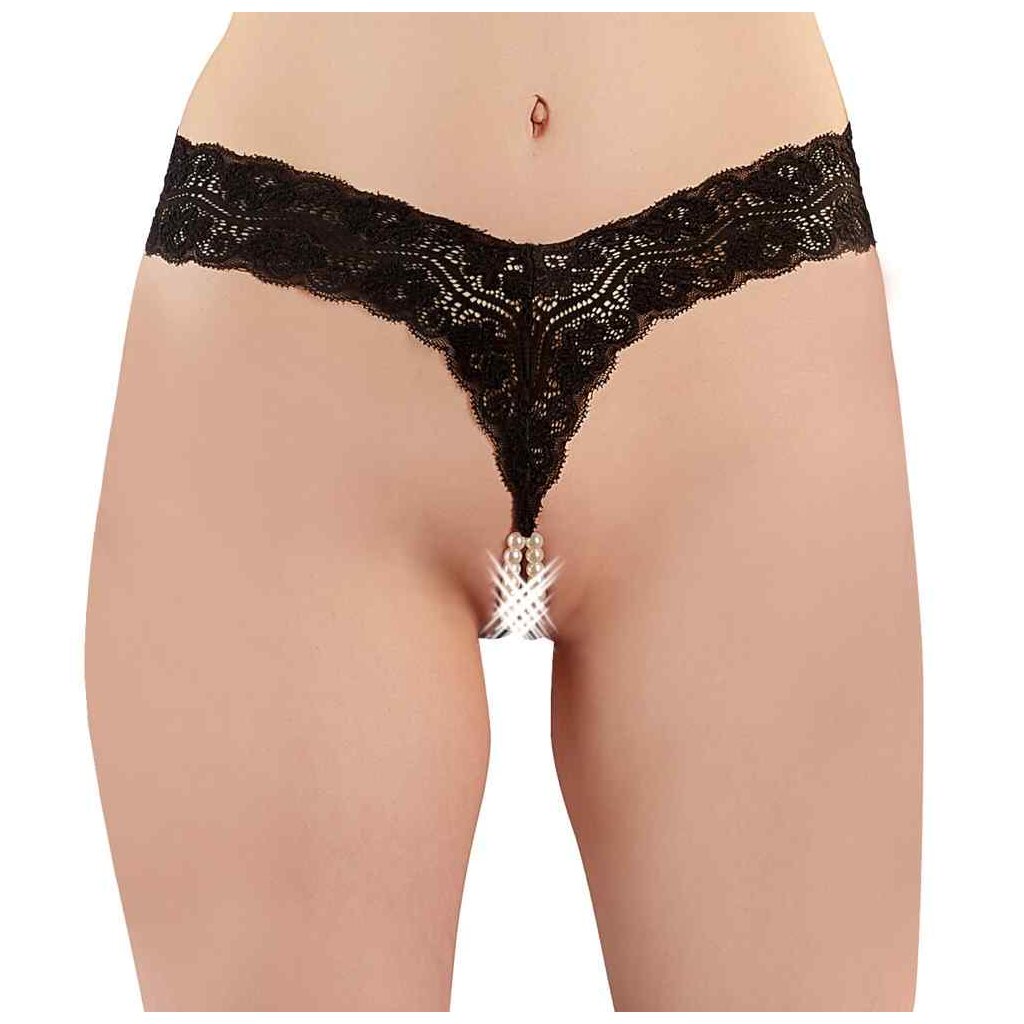 Aufregender String mit stimulierender Perlenkette im Schritt. Die zarte florale Spitze macht den sexy Look perfekt.