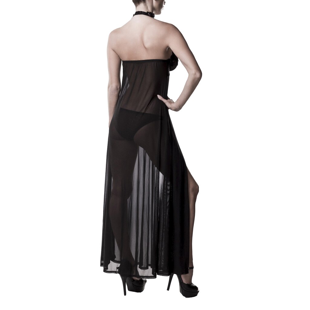Négligé érotique de longueur maximale, en résille transparente et élastique. Dentelle au crochet avec motif floral, sans armatures, bretelles réglables, slip assorti inclus. Taille S/M / Composition du matériau : 80% polyester, 20% élasthanne