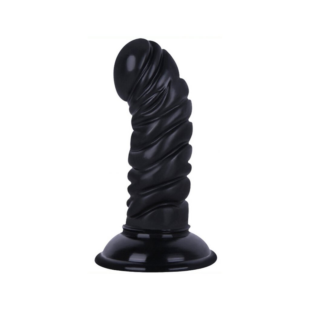 • Dieser Curvirib Plug ist ein schwarzes Sextoy mit einer gebogenen Form und gerippter Oberfläche.