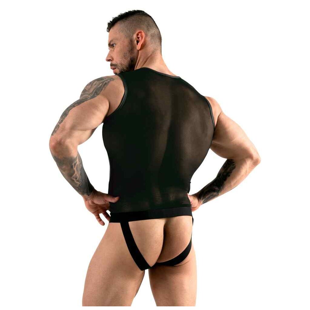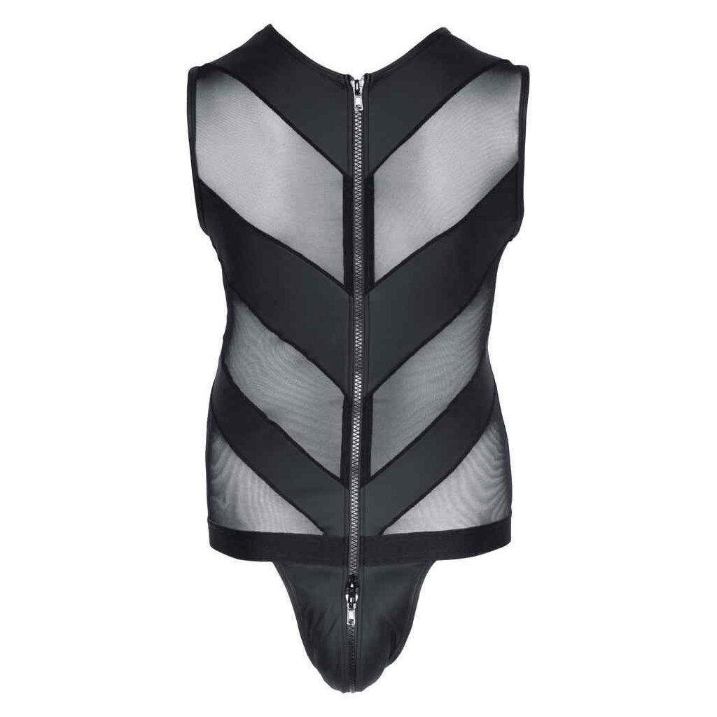 La combinaison de jeu de Svenjoyment est fabriquée en powernet doux et extensible. Les inserts diagonaux et la pochette sont en look trendmatte. Avec des bretelles de jocking qui révèlent les fesses, les remontent et les mettent en valeur. Le clou du spectacle est la fermeture à glissière à 3 voies (rembourrée), pratique (et érotique), qui commence au cou et s'arrête au niveau de l'entrejambe !