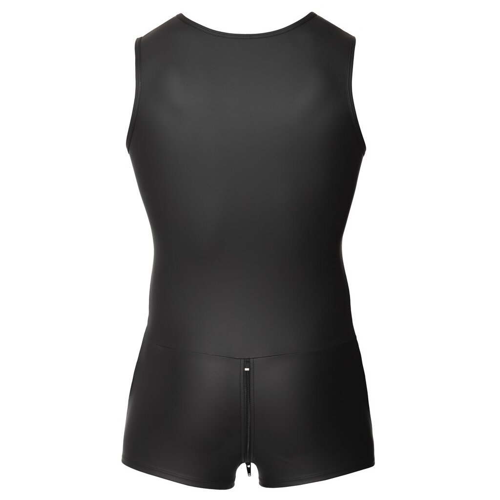 Ärmelloser Overall von Svenjoyment mit kurzem Bein und großen Eingrifftaschen. Rundum im trendigen schwarzen Mattlook und körperbetont geschnitten. Mit 3-Wege-Reißverschluss halsabwärts durch den Schritt bis über den Po. Die elastische Qualität schmiegt sich passformsicher hautnah an und trägt sich höchst bequem und komfortabel.