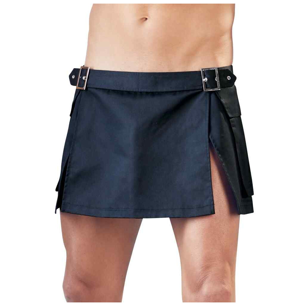 Perfekt für Partys und Rollenspiele! Kurzer Herren-Rock aus festem Webstoff im markanten Gladiator-Style. Mit dekorativen Schnallen und großen Taschen seitlich.