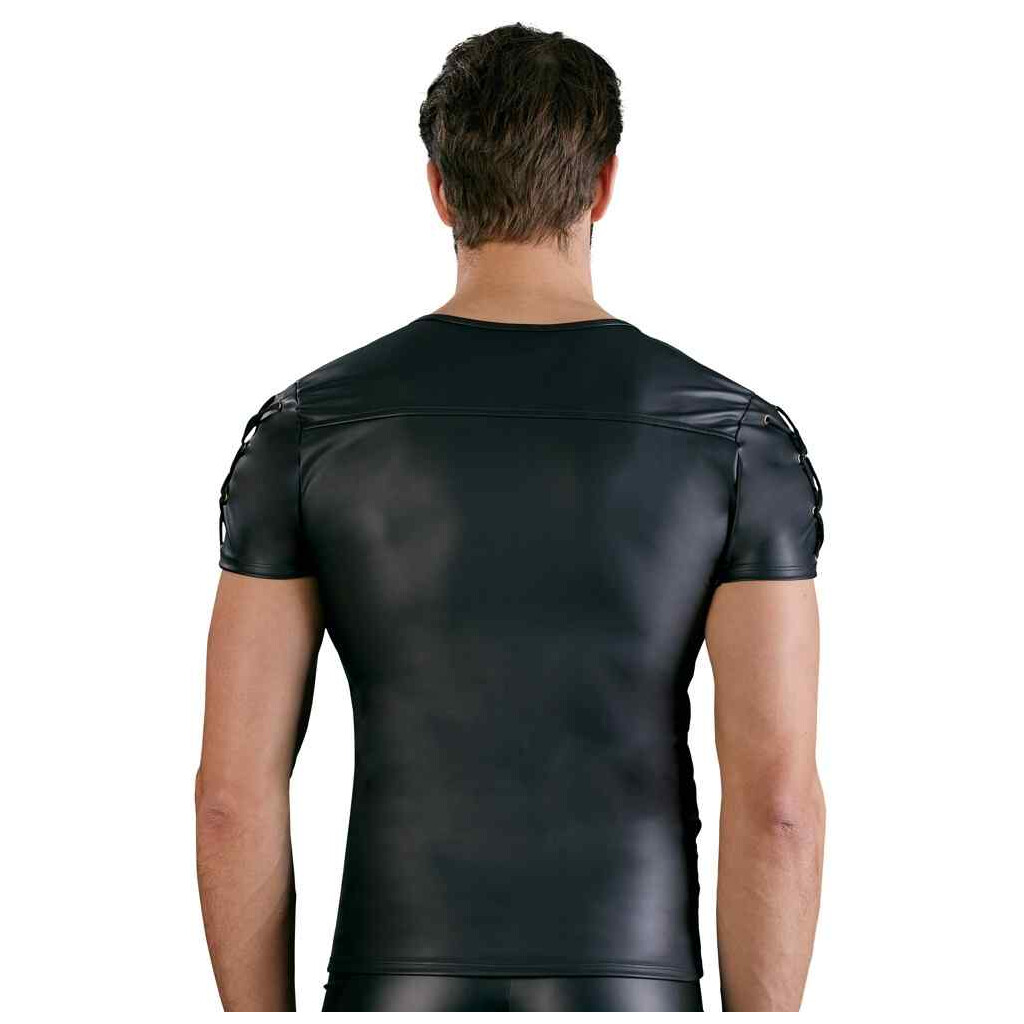 Cooler Look mit hohem Tragekomfort! Gerade geschnittenes Shirt im edlen, schwarzen Mattlook mit kurzem Messing-Reißverschluss vorne. An der Schulterpartie mit D-Ringen, auf den Ärmeln markante Schnürungen. Fantastisch elastisch für optimale Passform. 60% Polyurethan, 36% Polyester, 4% Elasthan.