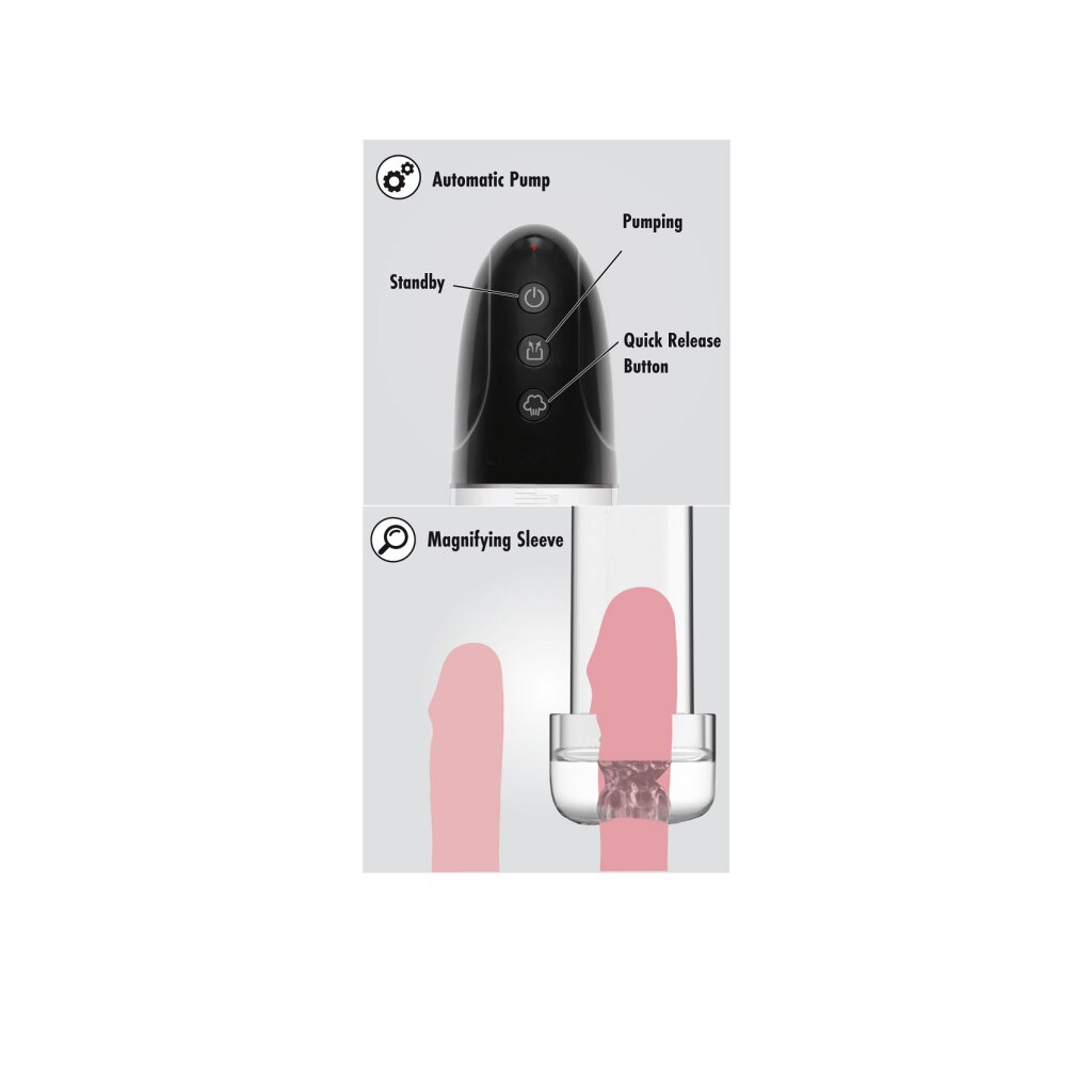FUSION X von HIDDEN DESIRE ist die ultimative Kollektion von Penispumpen für alle, die sich trauen, die Grenzen der Lust zu erweitern. Die automatische Penispumpe mit Vergrößerungshülse ist genau das, wonach Sie gesucht haben, um zusätzliche Länge, Umfang und Stimulation zu erreichen. Stecken Sie Ihren Penis in die Hülse, halten Sie sie fest an Ihren Schritt und starten Sie den automatischen Pumpmotor! Die kristallklare Hülle wirkt wie eine Lupe und sorgt für eine unglaubliche visuelle Stimulation. Der Texturtunnel der Hülle in Kombination mit dem automatischen Saugen, Streichen und der visuellen Stimulation führt zum ultimativen Vergnügen. Wählen Sie den bequemsten Saugmodus und beobachten Sie, wie Ihr Penis größer und härter wird. Machen Sie sich bereit, Ihre Größe und Ihr Selbstvertrauen mit FUSION X PENIS PUMPS zu steigern!