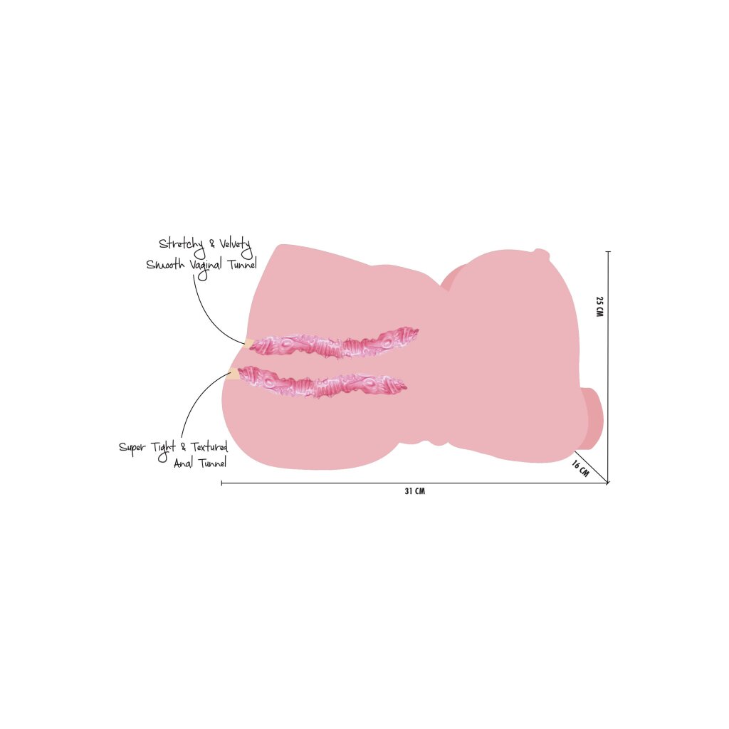 Measuring 31 x 25 x 16 cm, this full-figured toy is designed for deep, intense sessions. Its hefty weight and soft body give you a realistic, immersive feel every time you play.