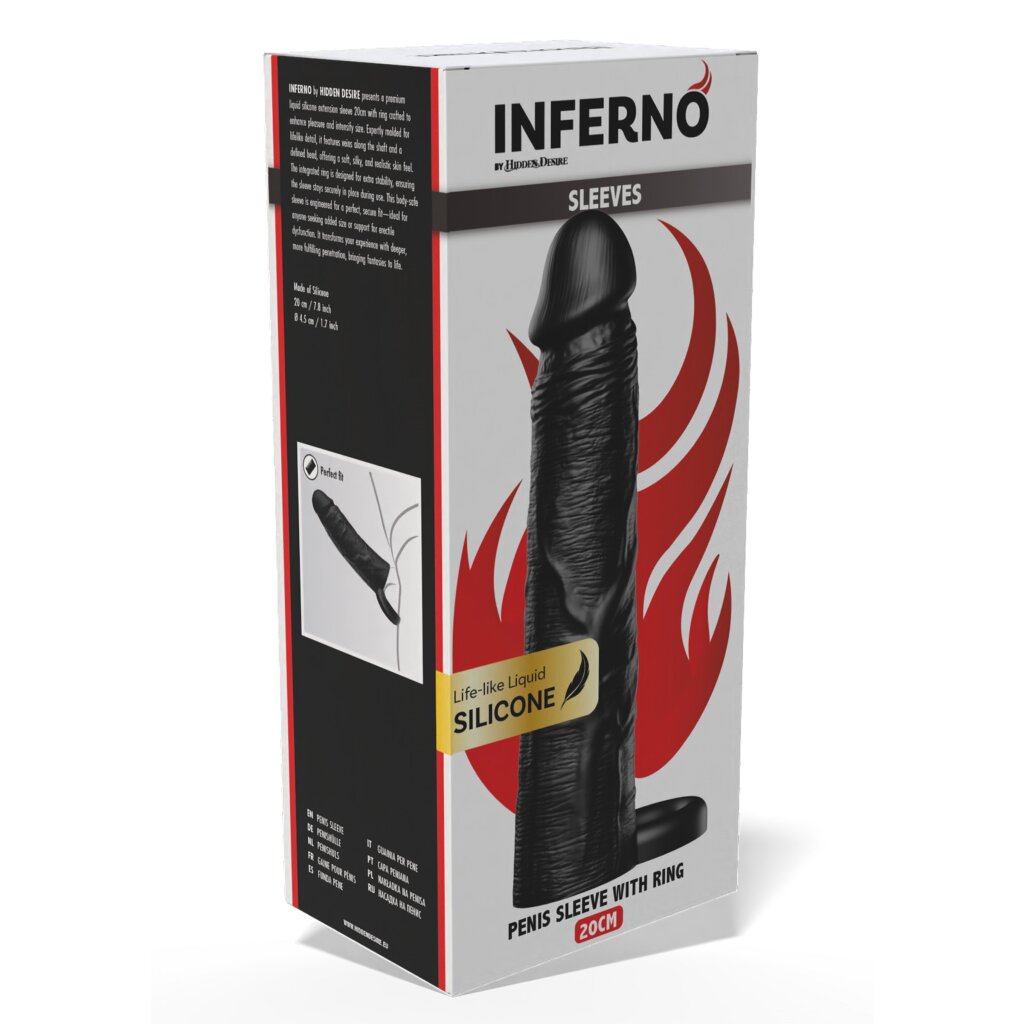 INFERNO by HIDDEN DESIRE dévoile une gaine d’extension haut de gamme conçue pour sublimer le plaisir et intensifier les sensations. Réalisée en silicone liquide doux et sûr pour le corps, elle imite parfaitement la peau grâce à sa texture soyeuse, ses veines délicates et son gland bien défini.