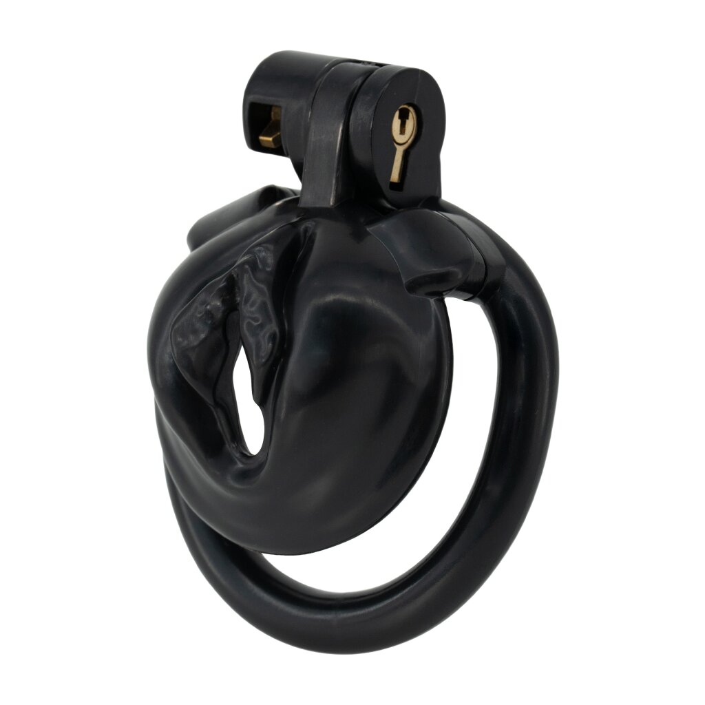 The smooth, contoured front features a delicate vagina shape, turning restraint into a bold visual statement. A reliable locking system keeps everything securely in place, reinforcing control and role clarity.