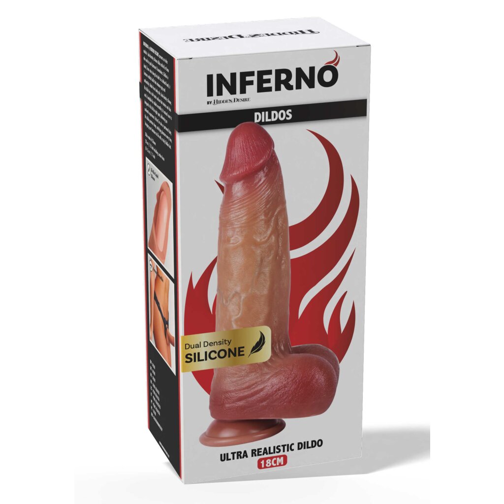 INFERNO von HIDDEN DESIRE präsentiert einen ultrarealistischen Silikondildo mit doppelter Dichte, der für alle entwickelt wurde, die die Grenzen der Lust erweitern möchten. Er ist detailreich gestaltet, von den Adern entlang des Schafts bis zur ausgeprägten Eichel, und verfügt über realistische Hoden für besseren Halt und mehr Authentizität. Dieser Dildo besteht aus körperverträglichem Silikon mit doppelter Dichte und hat eine weiche Oberfläche, die sich wie echte Haut anfühlt und flexibel ist, um zusätzliche Vielseitigkeit zu bieten. Seine natürliche Krümmung ist so gestaltet, dass er alle richtigen Stellen trifft und ein authentisches Erlebnis bietet. Dieser Dildo ist perfekt für Solo- oder Partnerspiele und verspricht jedes Mal tiefes, befriedigendes Vergnügen, das Ihre Fantasien mit einem wirklich lebensechten Gefühl zum Leben erweckt.