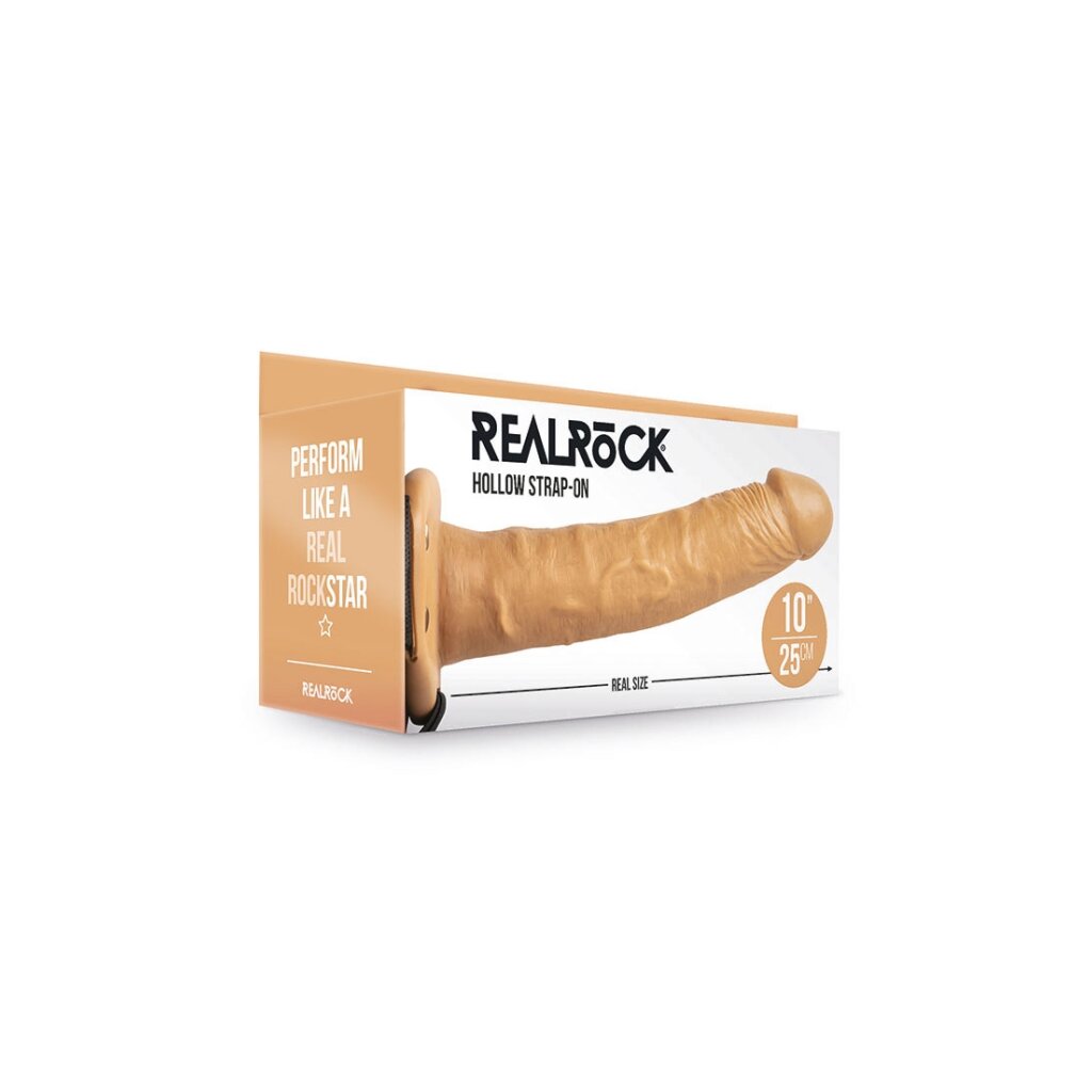 Be the RealRock star you've always wanted to be with this RealRock Hollow Strap-On! These products give you more girth and length, help you last longer, reduce premature ejaculation, help you perform even with erectile dysfunction and never disappoint your partner again. The strap-on is adjustable so that it adapts to every body shape. The waistband is comfortable so it won't slip while you're showing off your best moves. The dildo of this strap-on looks and feels realistic. The result is an experience that is indistinguishable from a real dildo. So it's time to strap yourself in and get going! Product dimensions: 11 x 27 x 9.5 cm / Product diameter: 5 cm / Inner diameter: 3.8 cm / Insertable length: 24.5 cm / Materials: PVC, polypropylene