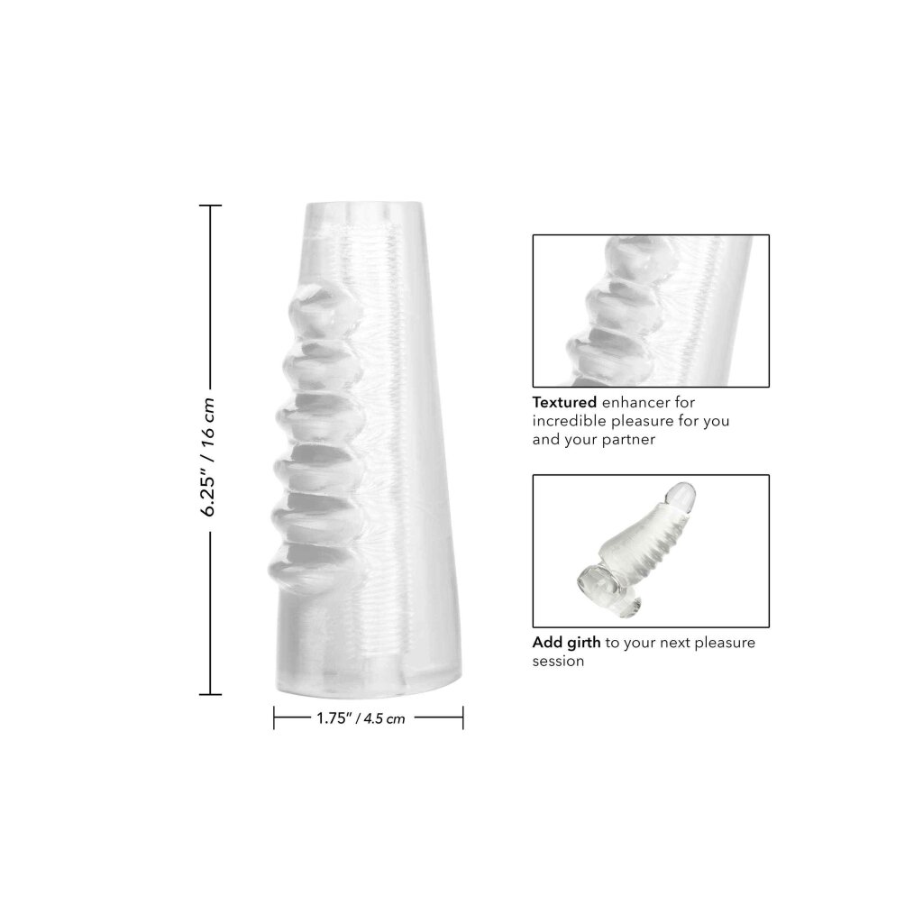Deux fois plus grand que le Hot Rod Enhancer original pour deux fois plus de plaisir, le Hot Rod Xtreme Enhancer est sûr d'amplifier vos passions. Le matériau doux et extensible, la chambre de plaisir nervurée et les crêtes étagées sont sûrs de maximiser chaque poussée. Conçu pour faire vibrer votre amant comme nul autre, ce puissant manchon amplificateur est doté d'une ligne de crêtes de plaisir étagées destinées à fournir une stimulation profondément satisfaisante. Tandis que vous faites vibrer votre amante grâce à l'augmentation de la circonférence et aux crêtes de plaisir étagées, le support d'érection puissant et la chambre texturée de l'amplificateur de performance donnent des résultats explosifs pour vous deux. La tige texturée et la circonférence accrue de 2 pouces offrent une stimulation puissante et un support d'érection intense. Enveloppez votre outil de plaisir dans ce manchon surdimensionné pour augmenter facilement l'endurance, la stimulation et le plaisir orgasmique. L'amplificateur flexible est fabriqué à partir d'un TPR hygiéniquement supérieur. Ce matériau sans danger pour le corps n'est pas parfumé et ne contient pas de phtalates, afin de préserver la santé et le bonheur de vos parties les plus sensibles.