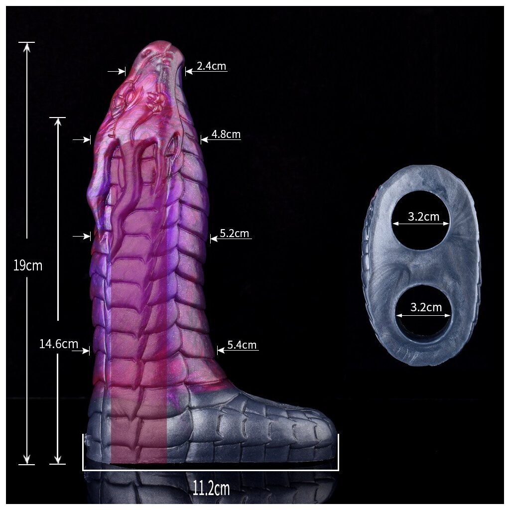 Material Silikon. Gesamtlänge 19 cm. Einführbare Länge 14,6 cm. Durchmesser 5,4 cm. Innendurchmesser 3 cm. Ringdurchmesser 3 cm. Gewicht 334 g.