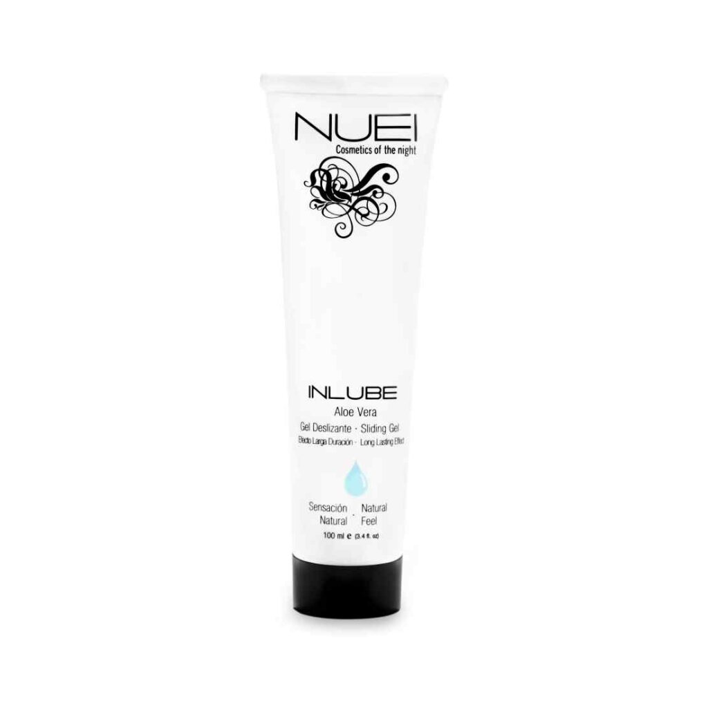 Lubrifiant Inlube Sliding-Gel à base d'eau Natural Feel de NUEI avec aloe vera nourrissant. Texture soyeuse avec un effet exclusif à long terme. La formule végétalienne est à base d'eau et est exempte de parabènes, de sucre et de gluten. Compatible avec le latex, les préservatifs et les jouets de toutes sortes.