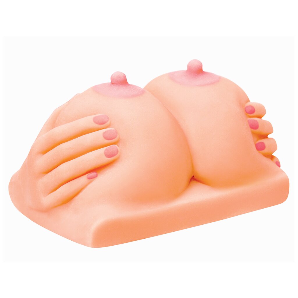 Glide between her huge rack that completely surrounds you and gently hugs you like the real thing. Almost full size and nice and heavy, the Titty Fuck can easily be propped up on pillows or stabilized on almost any flat surface. Realistic hands hold the tits nice and tight, squeezing them together for even more friction between the ribs-text