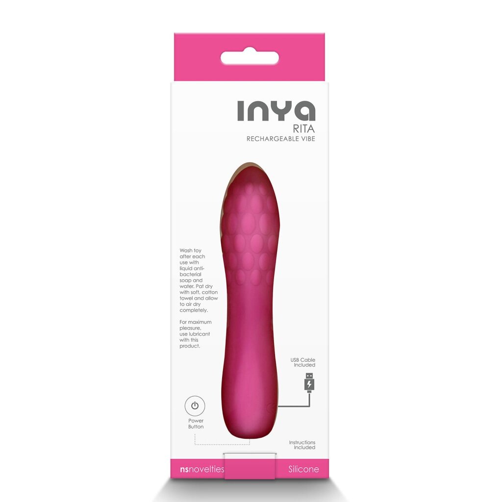 Trendy and compact, Rita by INYA is discreet, rechargeable, and travel friendly. Featuring a stimulating textured design made of platinum grade silicone, Rita has 10 exhilarating settings. Water resistant and suitable with all lubricants.