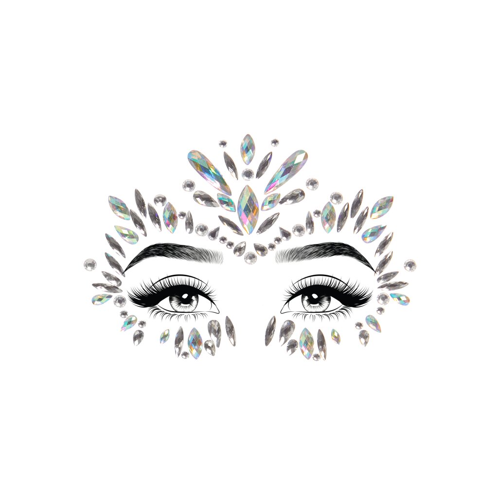 Selbstklebende Jewel-Sticker für das Gesicht. Einfach anzuwenden: Lösen Sie den Sticker und platzieren Sie ihn an der gewünschten Stelle auf der Haut. Üben Sie mittleren Druck aus. Sie benötigen keinen zusätzlichen Kleber. Getestet und hautverträglich.