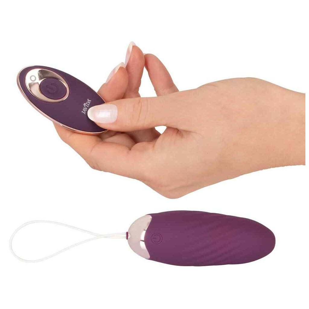 Rechargeable Vibro-Egg Shaking Love Ball (RC) from Javida with shaking-pulsating inner magnet that moves up and down in 8 different speed modes. With the wireless remote control, the modes are conveniently controllable at the touch of a button. Thanks to 5 meters range also from the partner - for surprising moments of pleasure and exciting control games. The distinctly grooved vibro egg is made of soft silicone material all around and provides a very pleasant feeling on the skin when worn and played with. In addition, the vibro egg is waterproof and can also be taken into the bathtub or shower. Rechargeable - USB charging cable is included. Including batteries (CR2032) for the remote control.