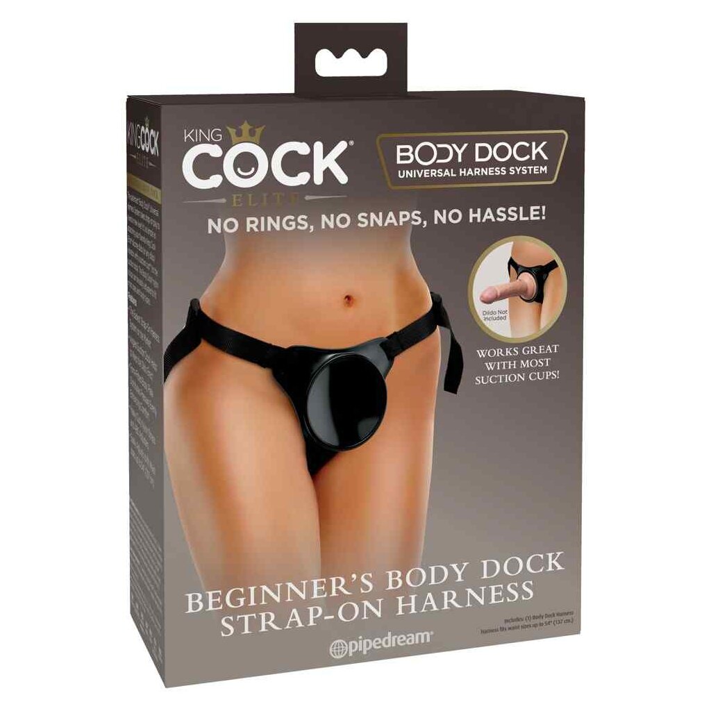 Le confortable harnais de strap-on King Cock Elites Beginners Body Dock s'enfile et s'équipe en un clin d'œil pour un plaisir illimité de pegging et la réalisation de rêves de thrusting lesbien.