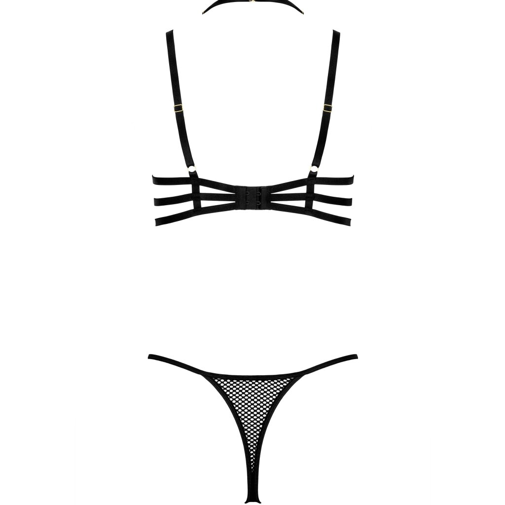 The matching thong stylishly echoes the design and completes the ensemble with harmony and flair. A light padding in the crotch area provides additional comfort and a pleasant wearing experience. Perfect for sensual moments when you want to reveal your bold and confident side. Stockings not included.