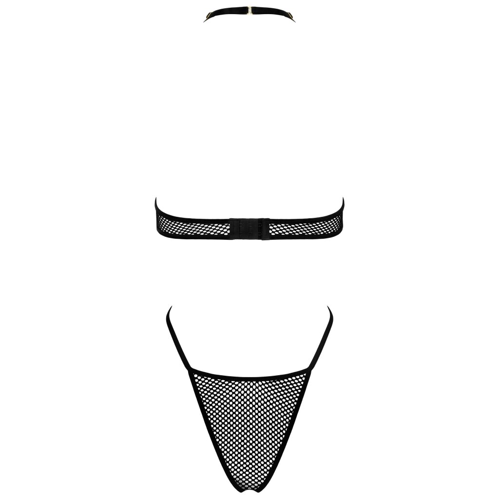 Body accrocheur en résille à larges mailles dans un noir intemporel. Les découpes latérales, le décolleté en U profond et les bretelles délicates soulignent parfaitement la silhouette. Le tissu élastique assure un ajustement confortable, tandis que la fermeture à crochets dans le dos offre un maintien sûr. Un look lingerie audacieux qui en dit long. Bas non inclus.