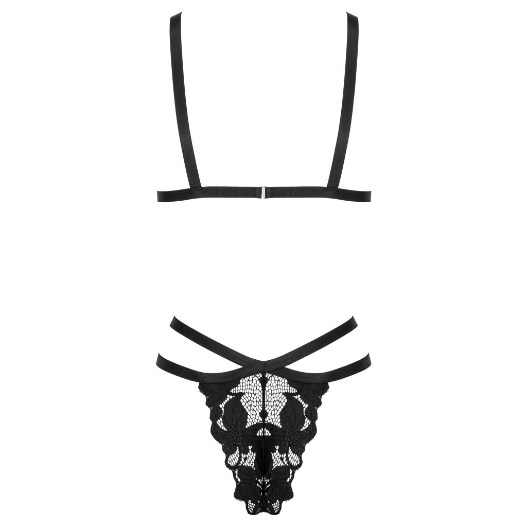 Der passende String ist mit doppelten seitlichen Trägern und aufwendiger Spitze verziert und verbindet Eleganz mit modernem Flair. Beide Teile sind vollständig verstellbar und verbinden Komfort mit einem selbstbewussten und stilvollen Look.