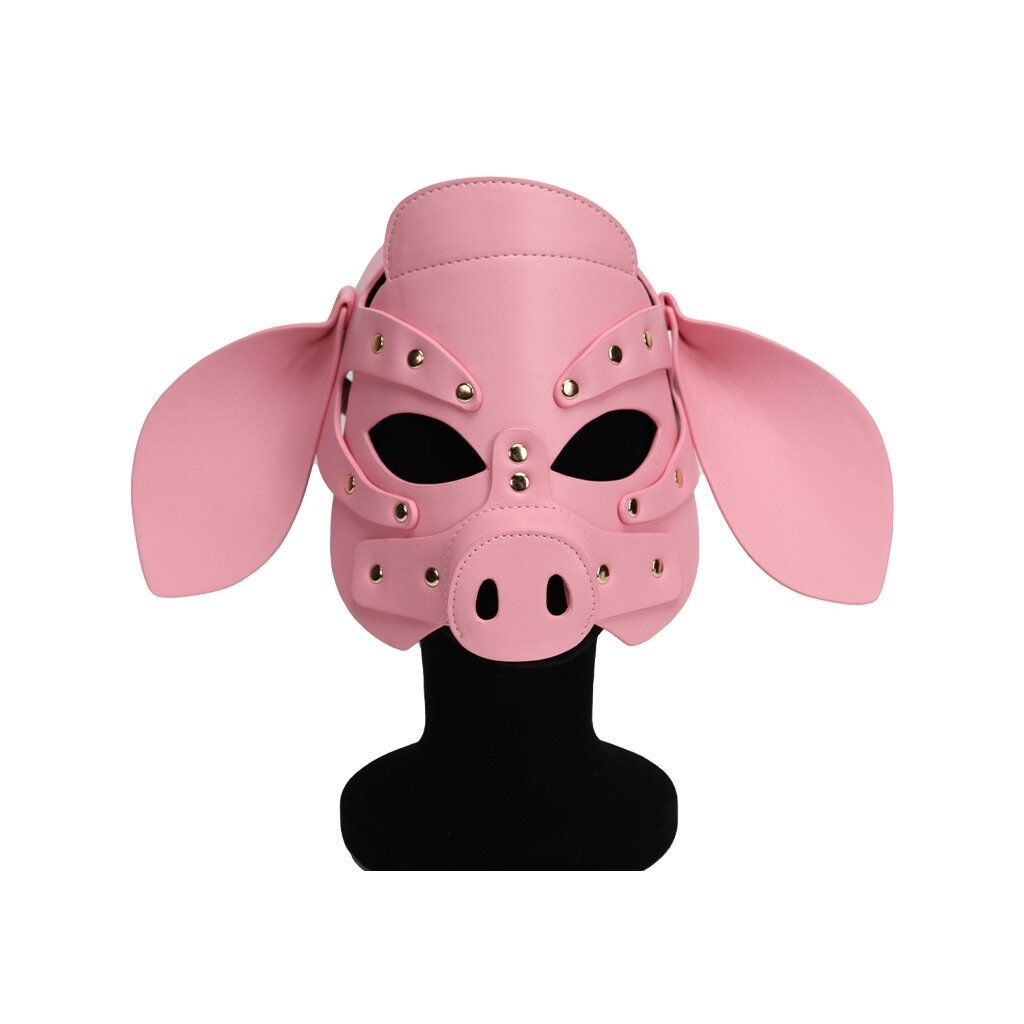 • The Pig Grox mask is shaped like a pig's head, with floppy ears and a snout.